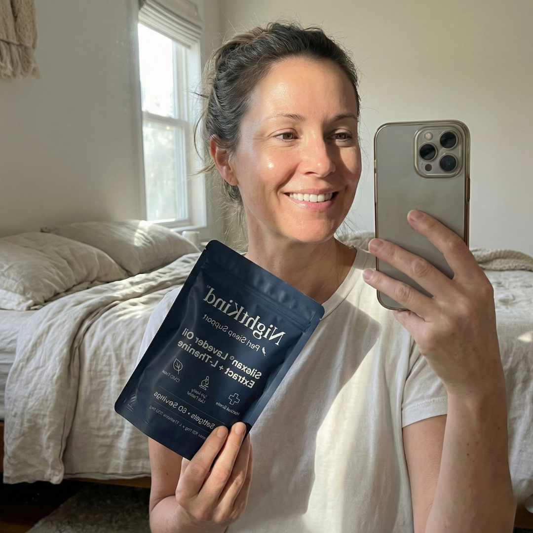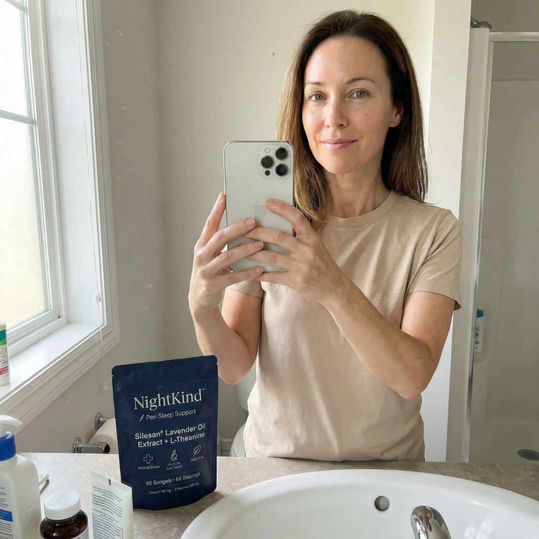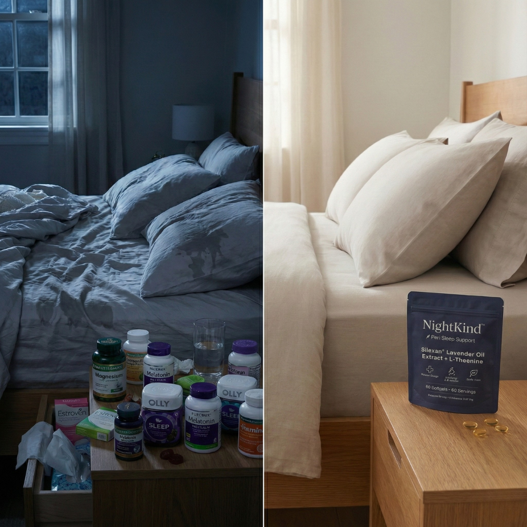 NightKind contains Silexan®—the only compound clinically shown to work on the Progesterone-GABA pathway that breaks down in perimenopause.