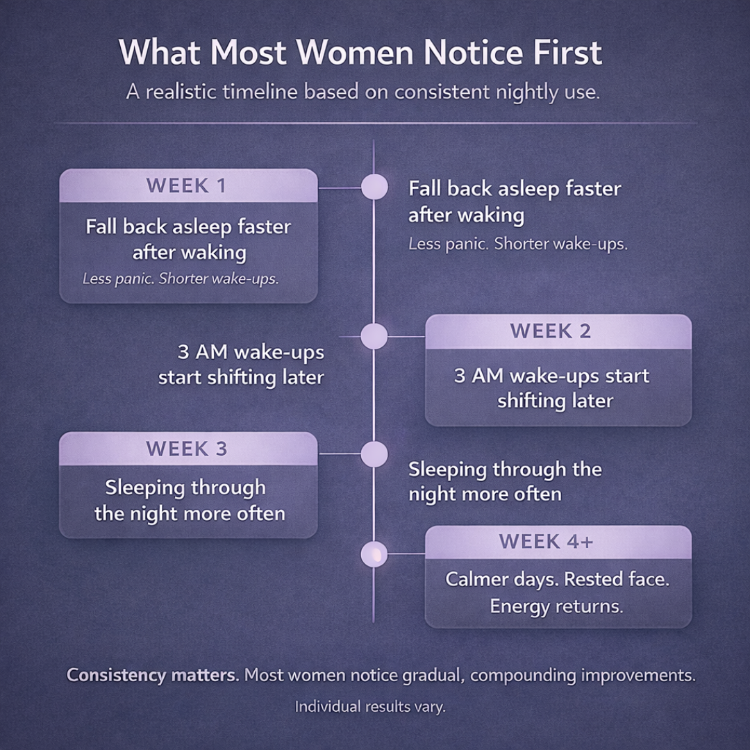 Most women notice a difference in week 1—falling back asleep faster after waking.
